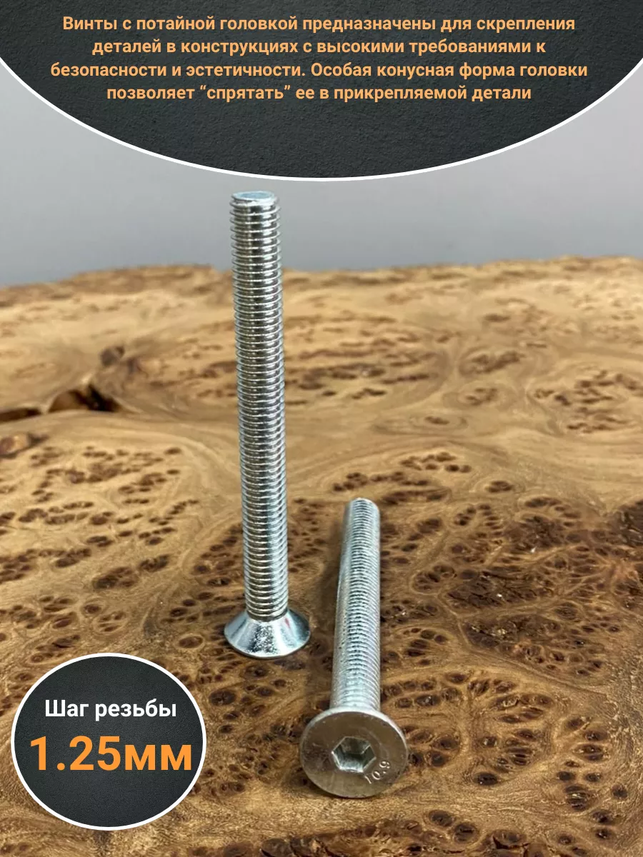 Винт потайной 8х80 под шестигранник DIN7991 к.п.10.9, 10 шт.