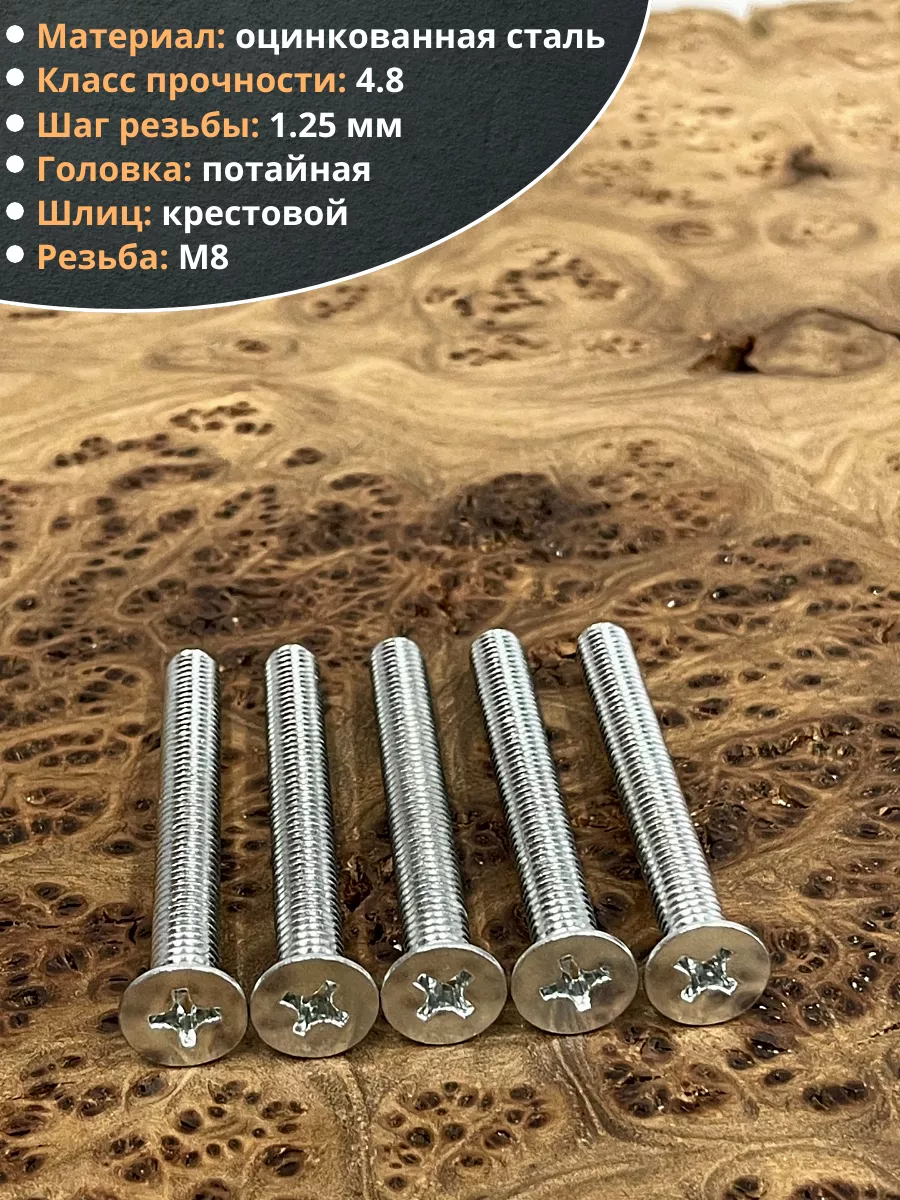 Винт потайной оцинкованный 8х70 DIN965, 10 шт.