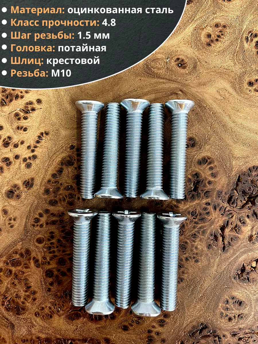 Винт потайной оцинкованный 10х40 DIN965, 10 шт.