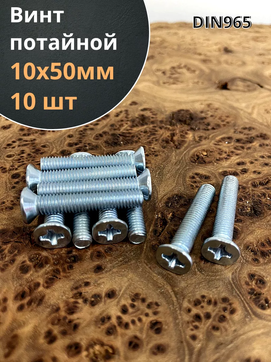 Винт потайной оцинкованный 10х50 DIN965, 10 шт.