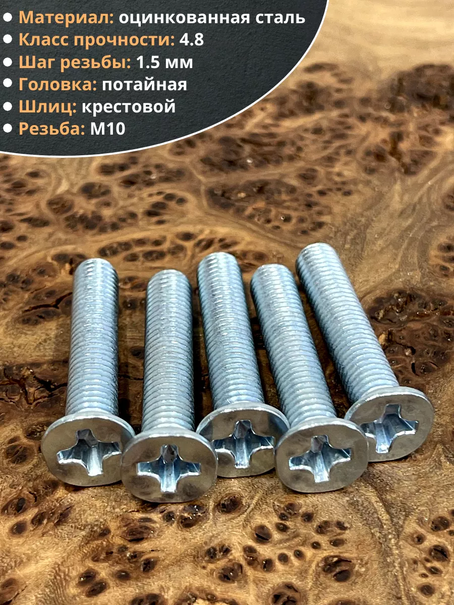 Винт потайной оцинкованный 10х50 DIN965, 50 шт.