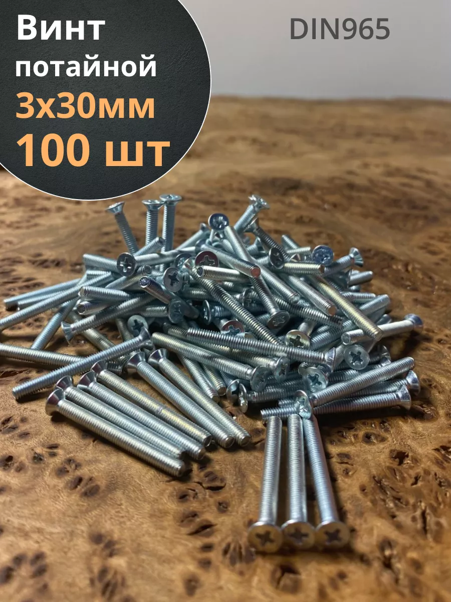 Винт потайной оцинкованный 3х30 DIN965, 100 шт.
