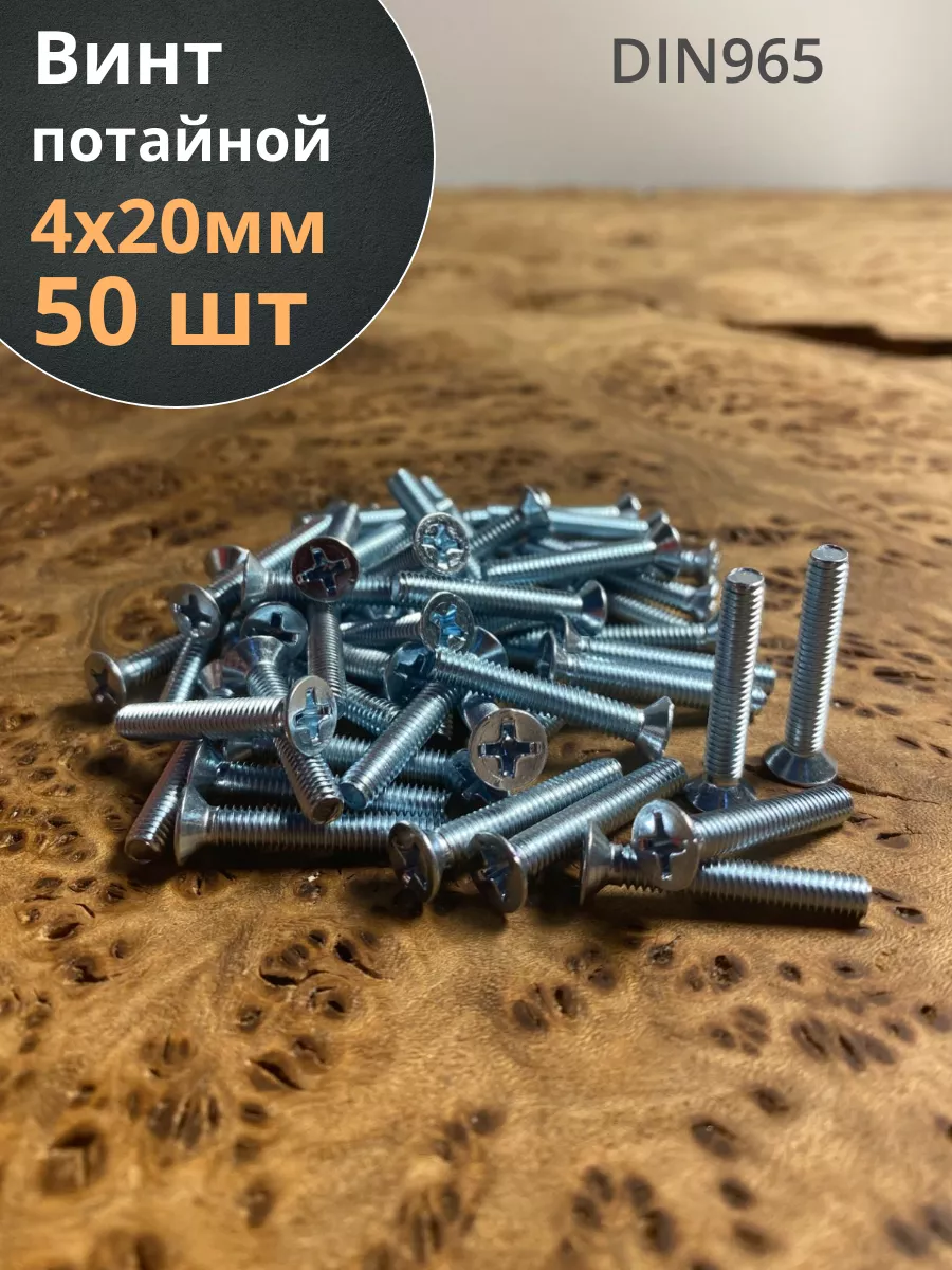 Винт потайной оцинкованный 4х20 DIN965, 50 шт.
