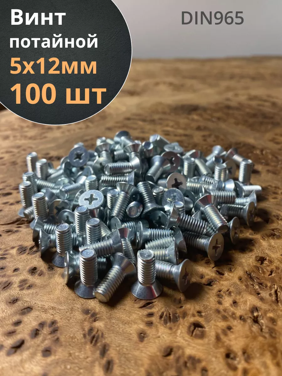 Винт потайной оцинкованный 5х12 DIN965, 100 шт.
