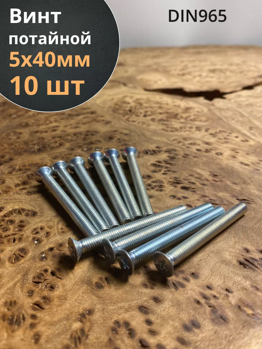 Винт потайной оцинкованный 5х40 DIN965, 10 шт.