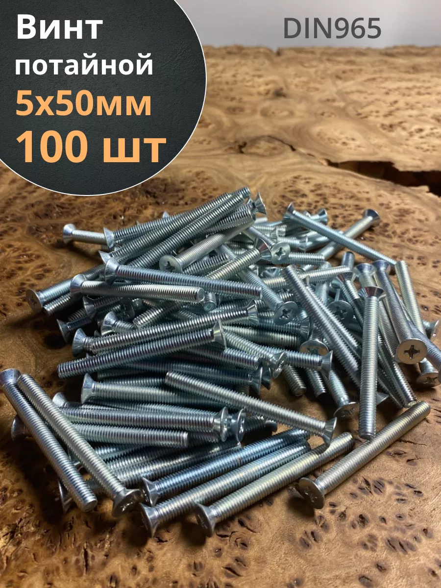 Винт потайной оцинкованный 5х50 DIN965, 100 шт.