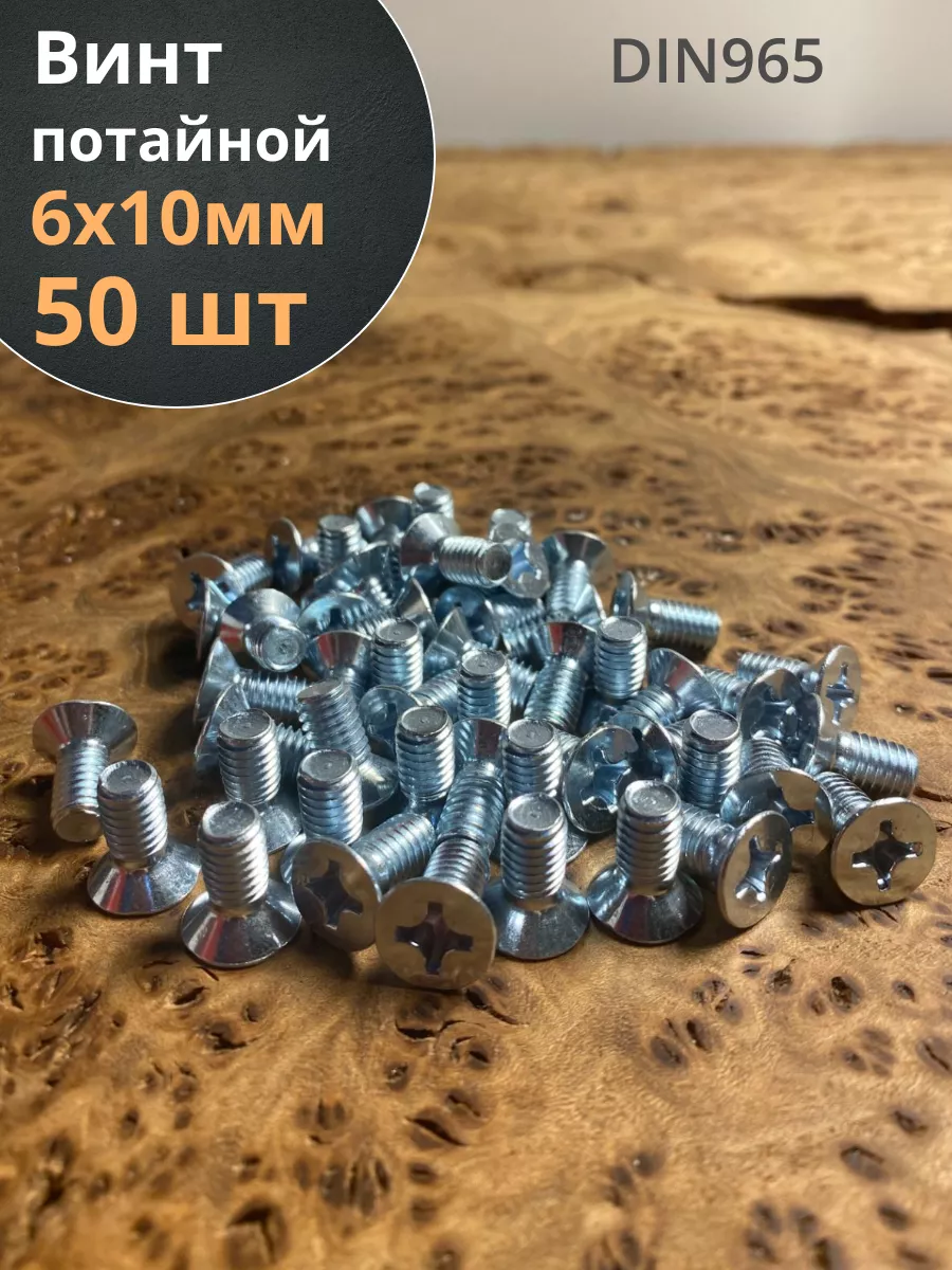 Винт потайной оцинкованный 6х10 DIN965, 50 шт.