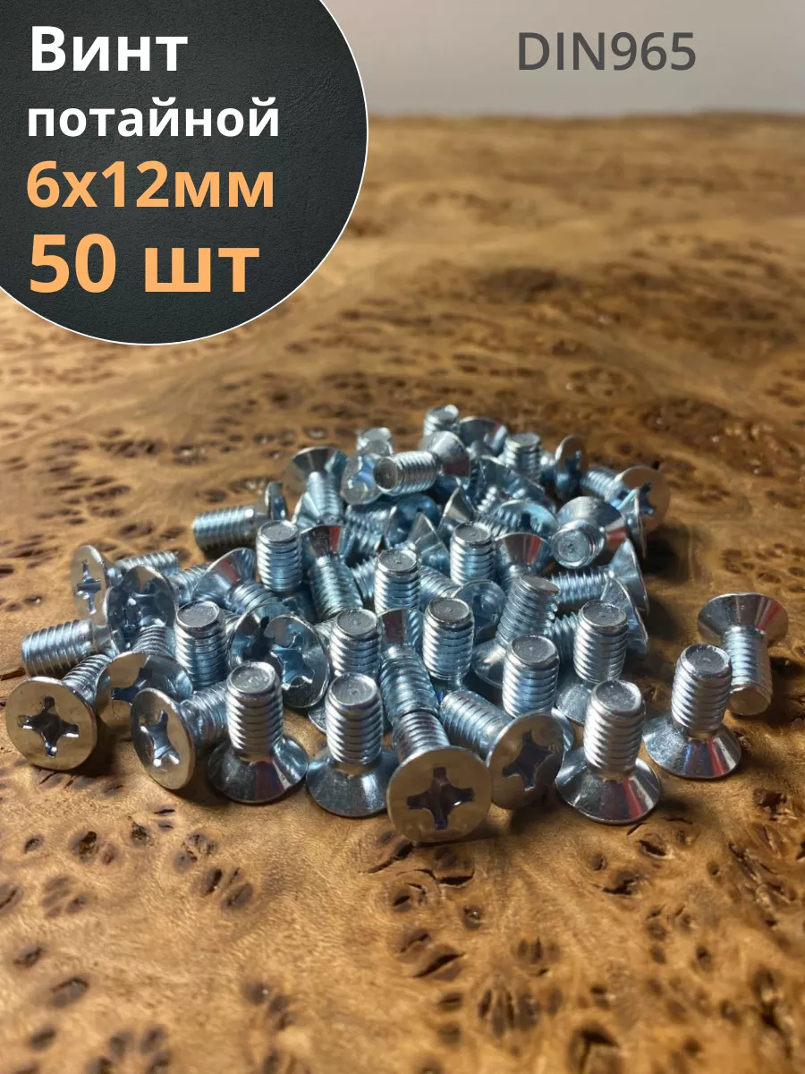 Винт потайной оцинкованный 6х12 DIN965, 50 шт.