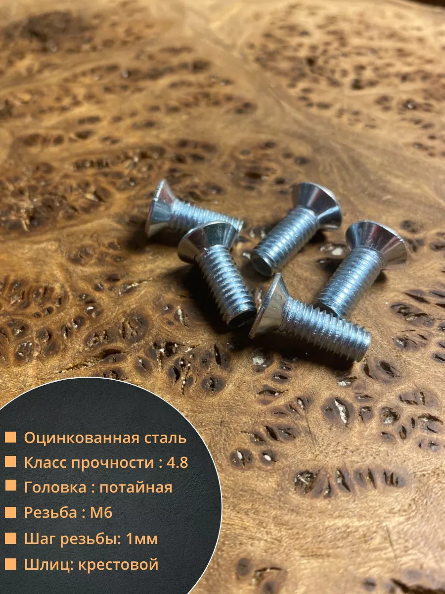Винт потайной оцинкованный 6х16 DIN965, 10 шт.