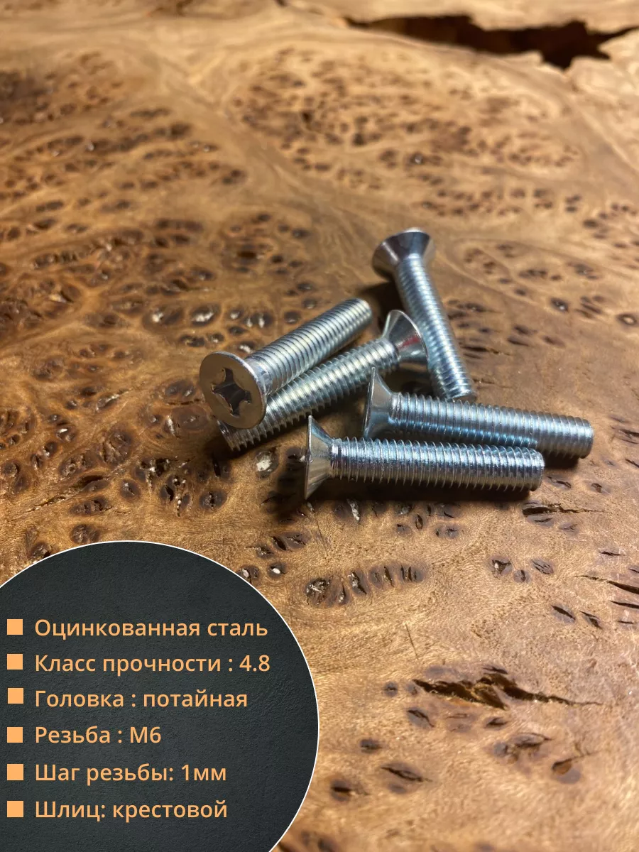 Винт потайной оцинкованный 6х25 DIN965, 10 шт.