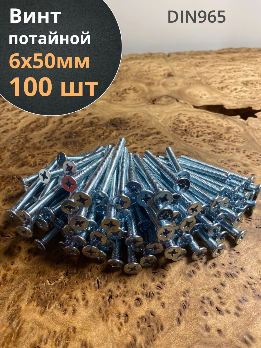 | Винт потайной оцинкованный 6х50 DIN965, 50 шт. | 22036 | 1 шт. |