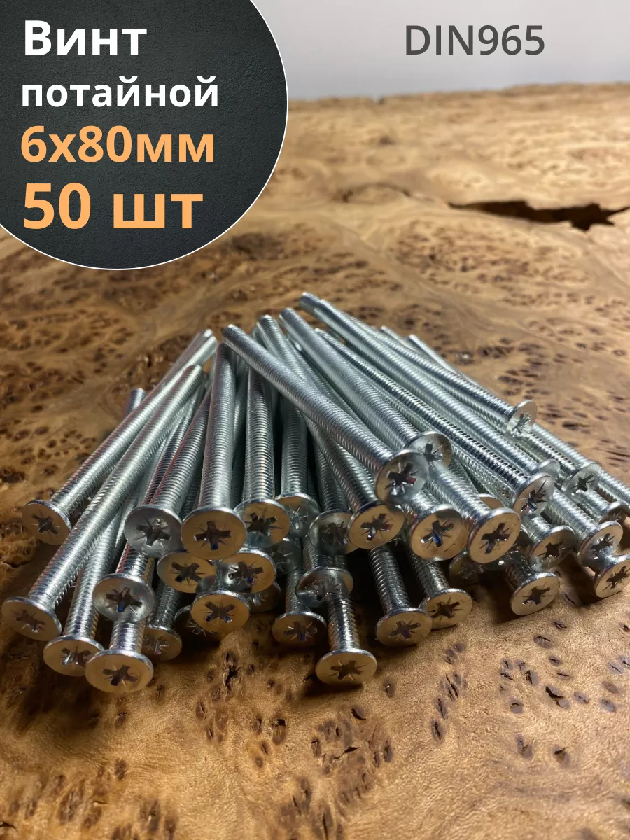 Винт потайной оцинкованный 6х80 DIN965, 50 шт.