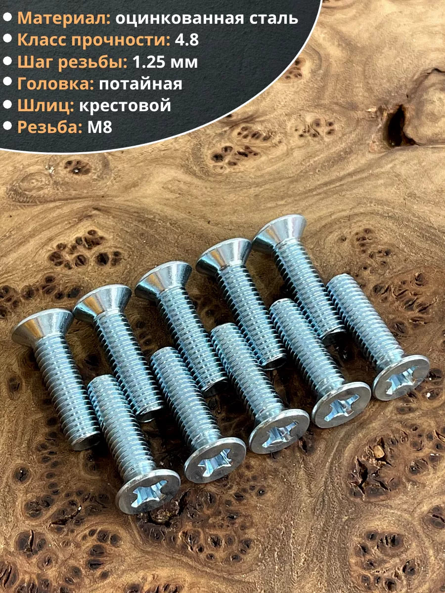 Винт потайной оцинкованный 8х20 DIN965, 50 шт.