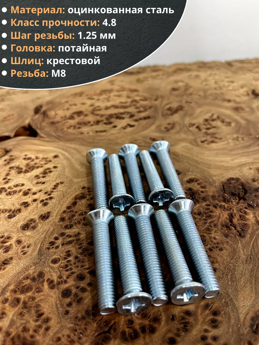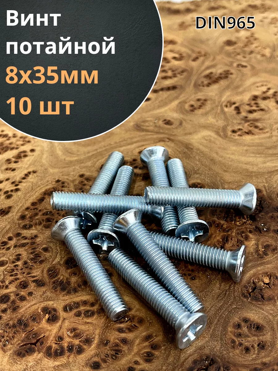 Винт потайной оцинкованный 8х35 DIN965, 10 шт.