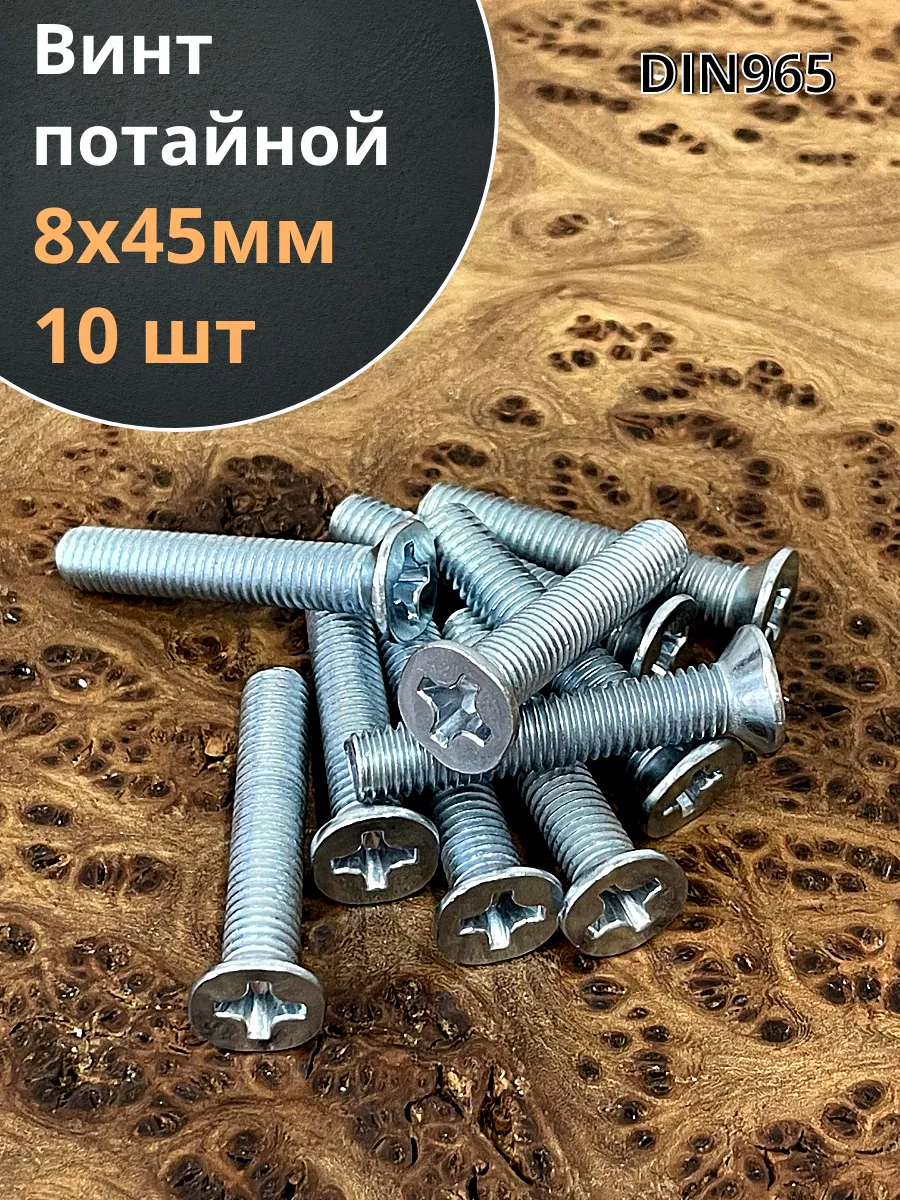 Винт потайной оцинкованный 8х45 DIN965, 10 шт.