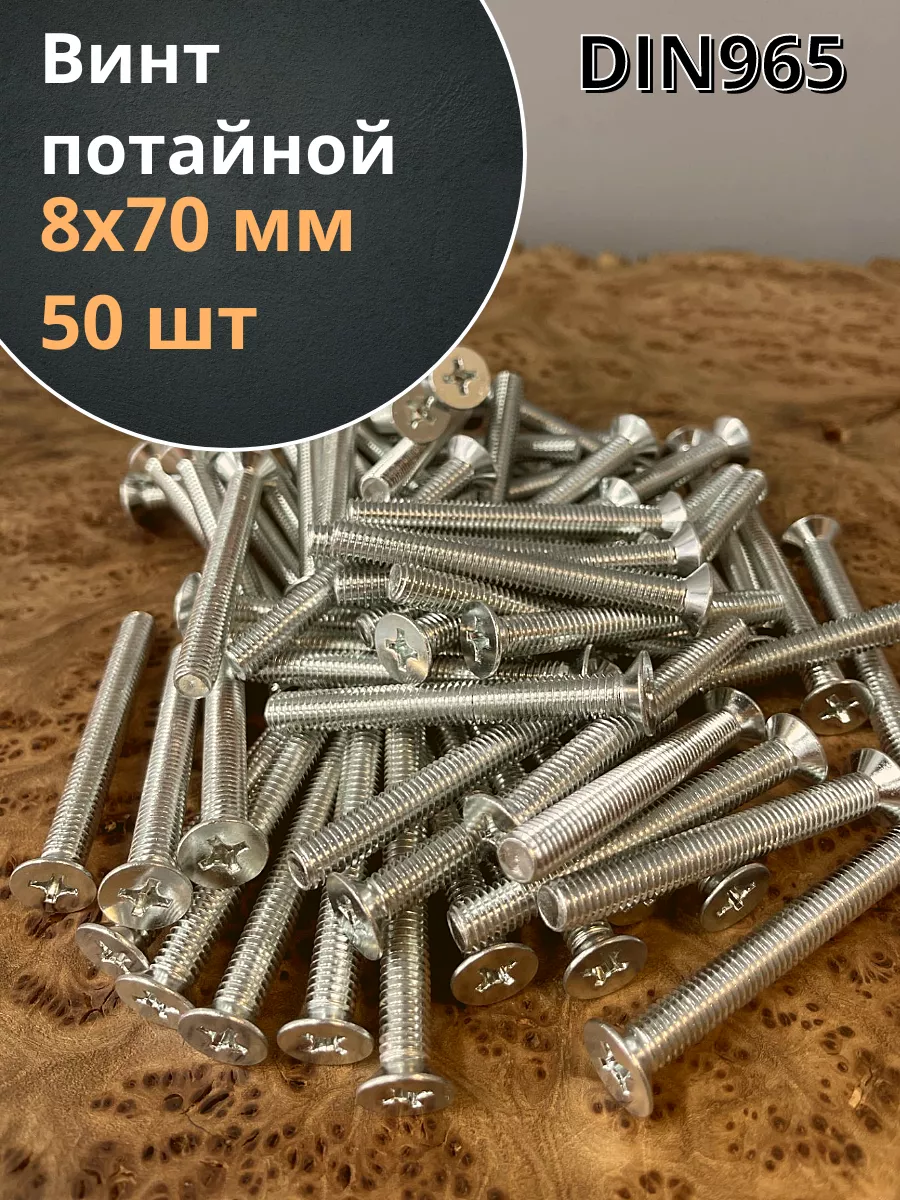 Винт потайной оцинкованный 8х70 DIN965, 50 шт.