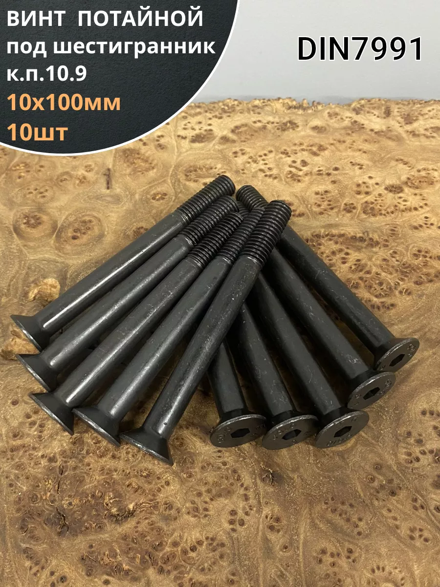 Винт потайной под шестигранник НР М10х100 DIN7991 к.п.10.9,10 шт