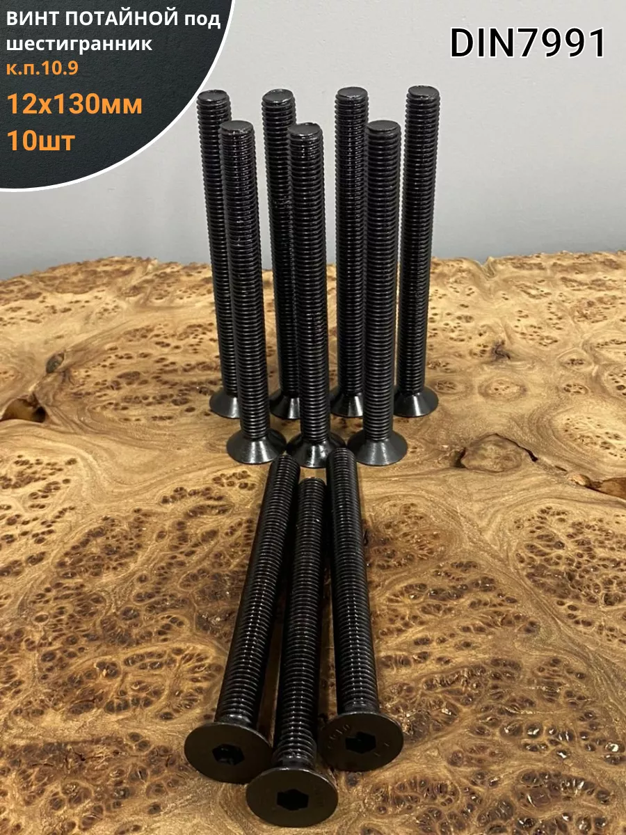 Винт потайной под шестигранник ПР М12х130 DIN7991к.п.10.9,10 шт