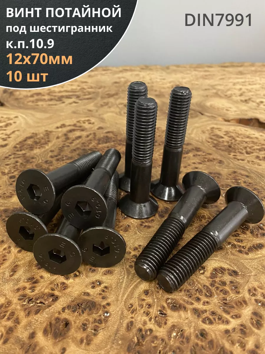 Винт потайной под шестигранник 12х70 DIN7991 к.п.10.9,10 шт.