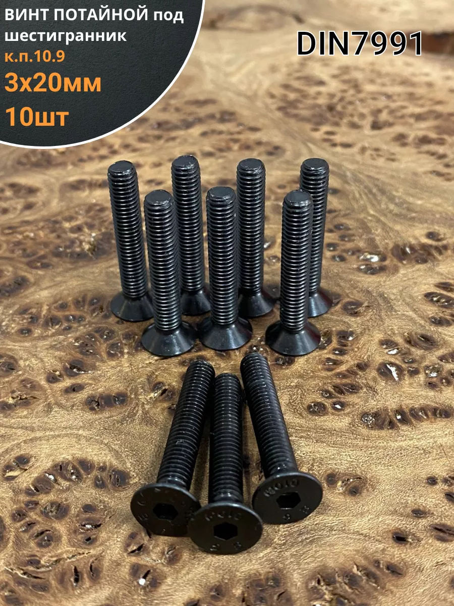 Винт потайной под шестигранник 3х20 DIN7991 к.п.10.9,10 шт.