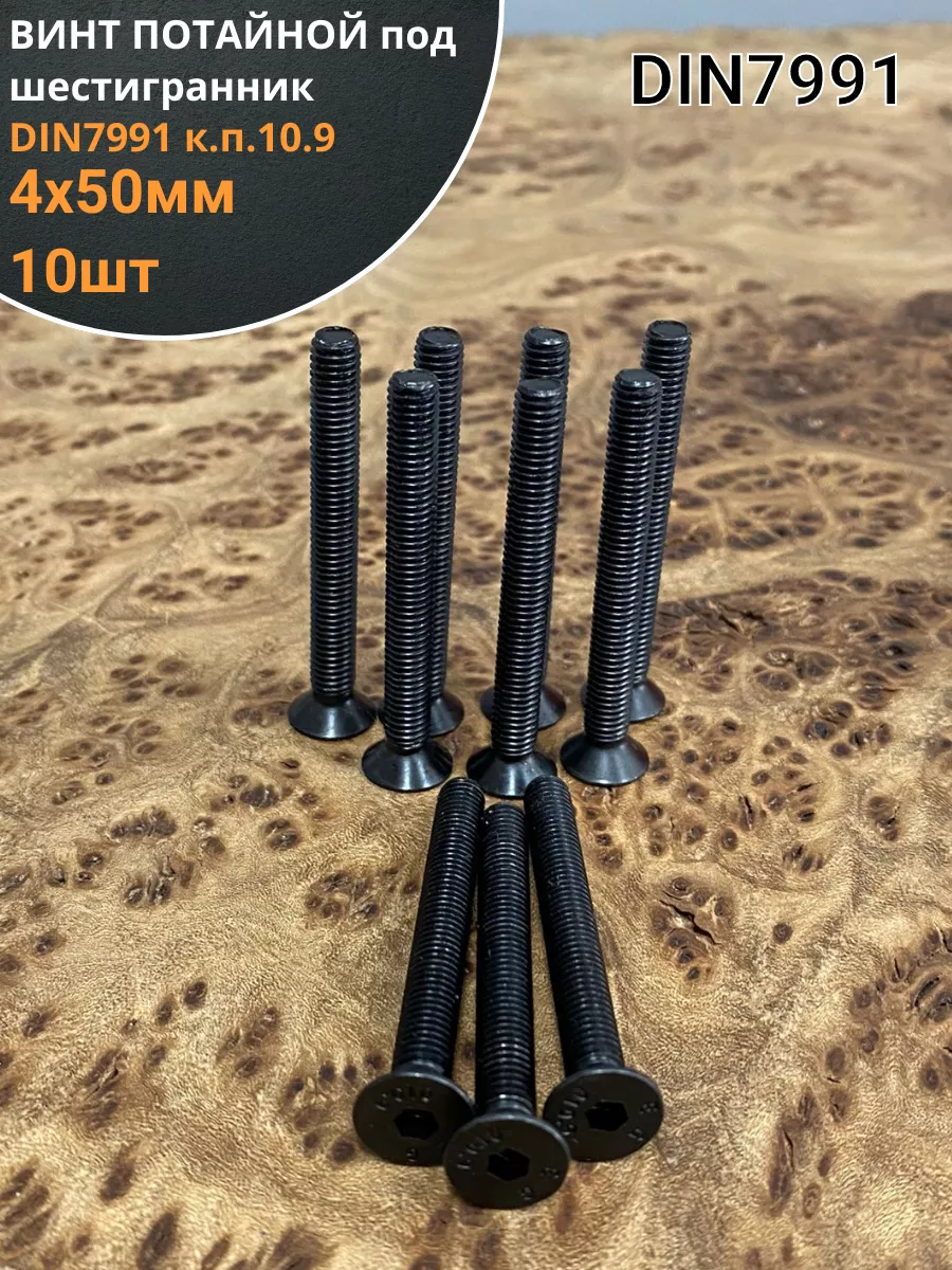 Винт потайной под шестигранник 4х50 DIN7991 к.п.10.9, 10шт.