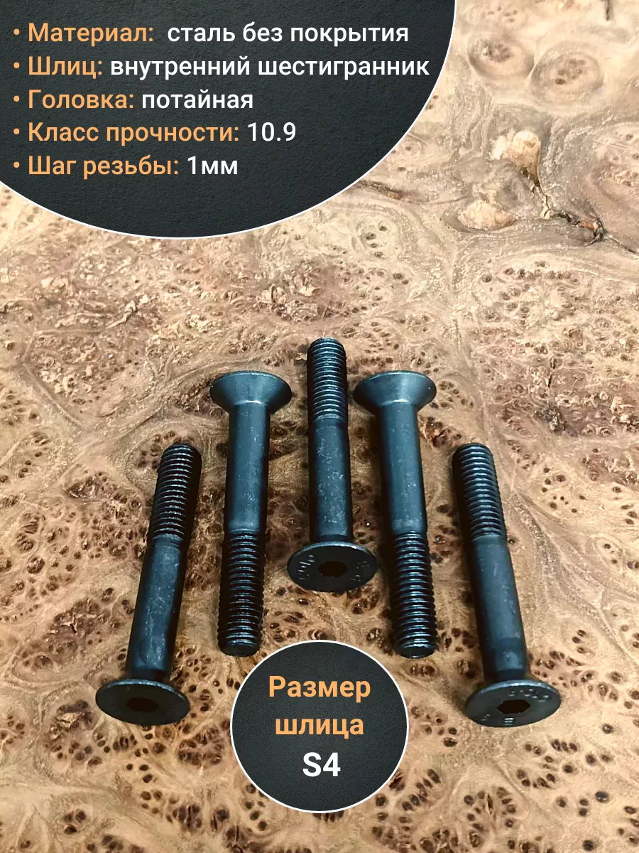 Винт потайной под шестигранник НР М6х50 DIN7991 к.п.10.9, 10 шт.