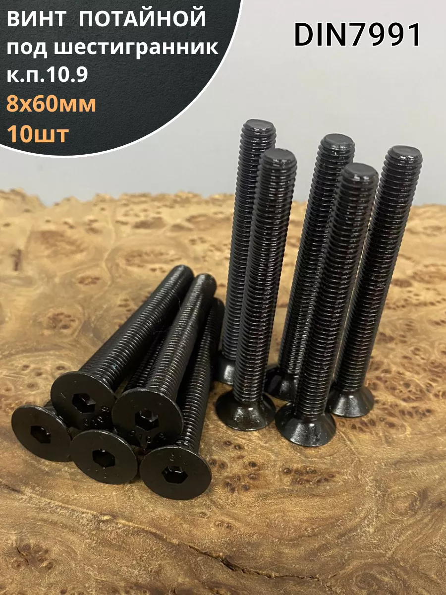 Винт потайной под шестигранник М8х60 DIN7991 к.п.10.9, 10 шт.