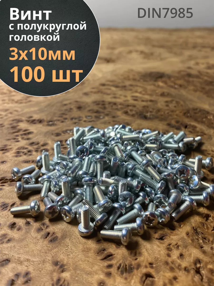 Винт с полукруглой головкой М3х10 ОЦ DIN7985, 100 шт.