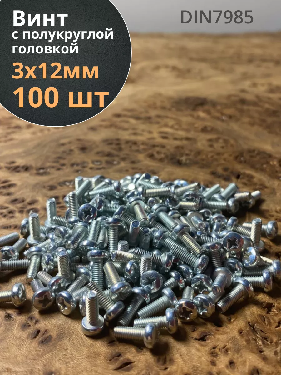 Винт с полукруглой головкой М3х12 ОЦ DIN7985, 100 шт.