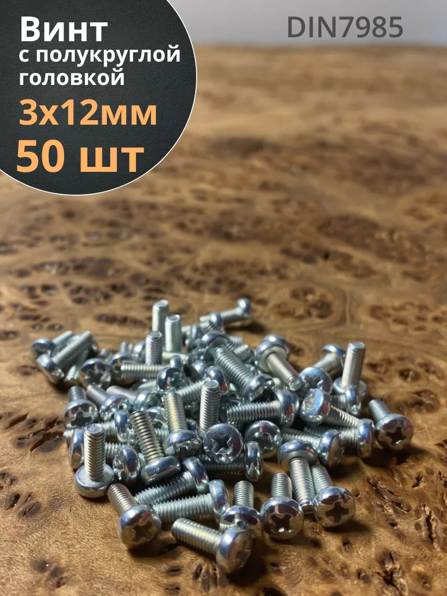 Винт с полукруглой головкой М3х12 ОЦ DIN7985, 50 шт.