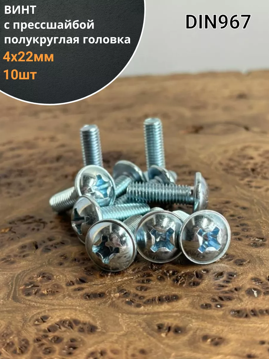 Винт с прессшайбой М4х22 полукруглая головка DIN967, 10 шт.