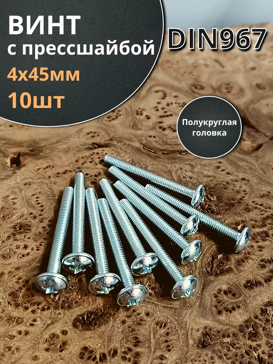 Винт с прессшайбой М4х45 полукруглая головка DIN967, 10 шт.