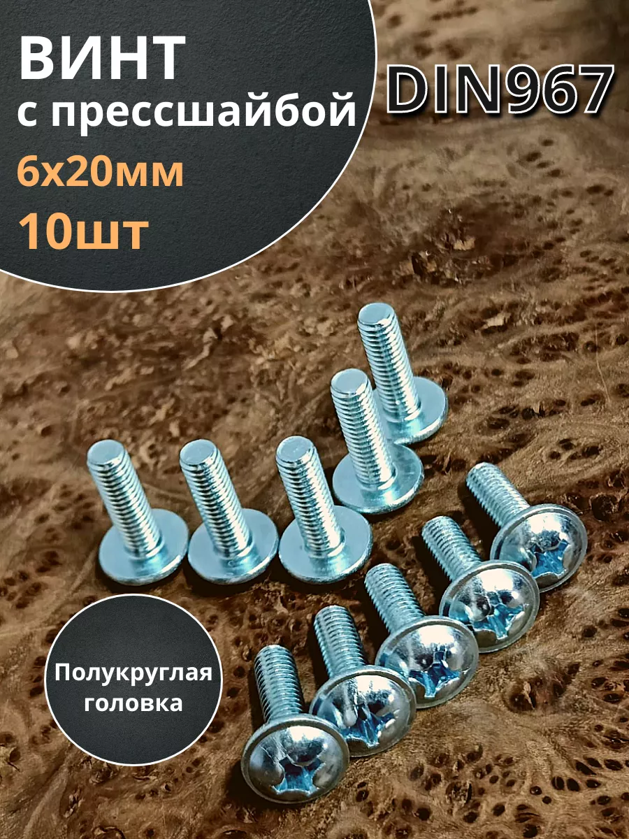 Винт с прессшайбой М6х20 полукруглая головка DIN967,50 шт. вм620фф50 1 шт.