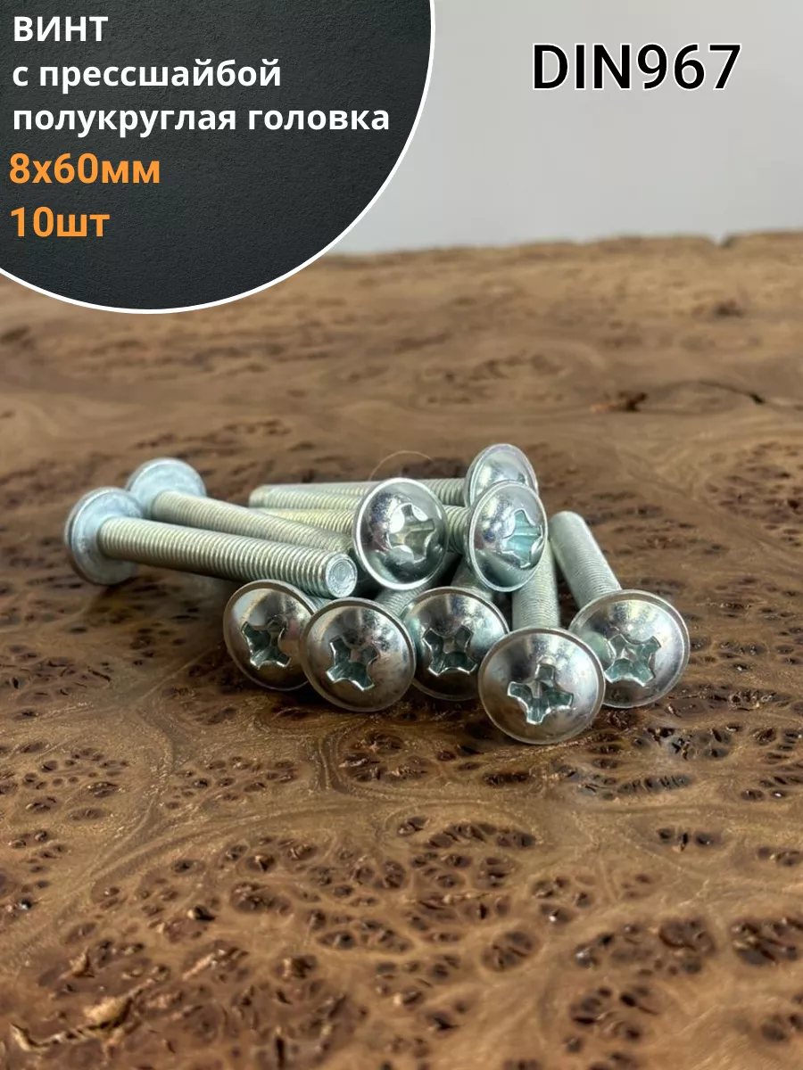 Винт с прессшайбой М8х60 полукруглая головка DIN967, 10 шт.