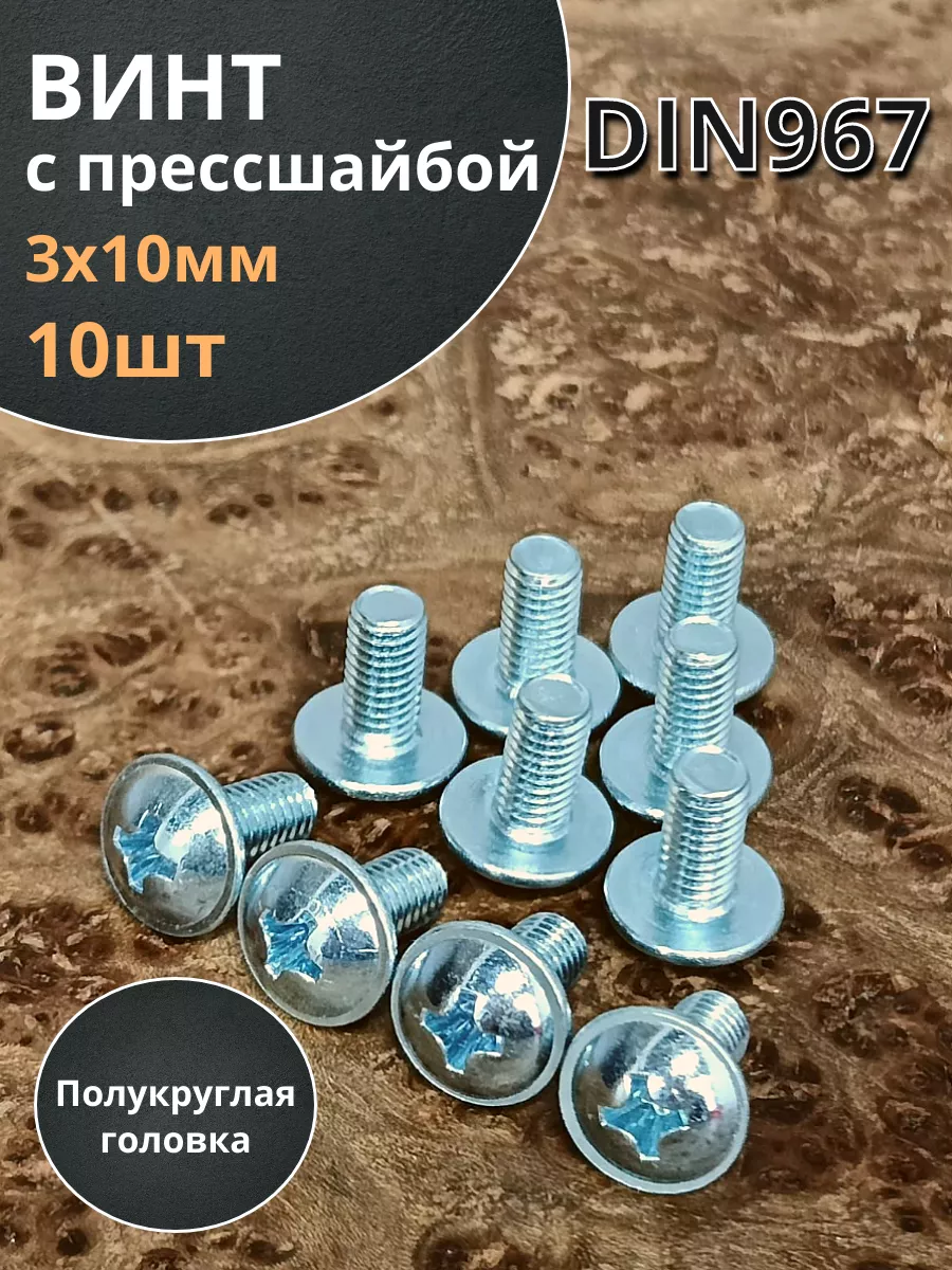 Винт с прессшайбой М3х10 мебельный DIN967 ,50 шт. вп310ф50 1 шт.
