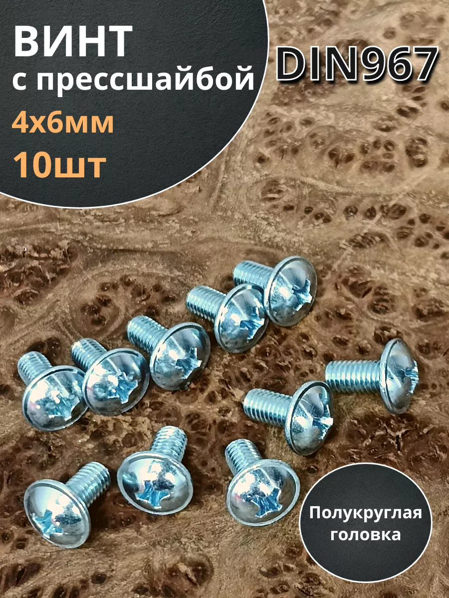 Винт с прессшайбой М4х6 полукруглая головка DIN967, 50 шт. вп46ф50 1 шт.