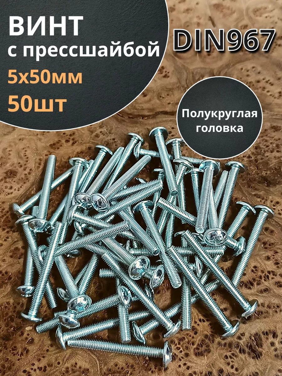 Винт с прессшайбой М5х50 мебельный DIN967, 50 шт.