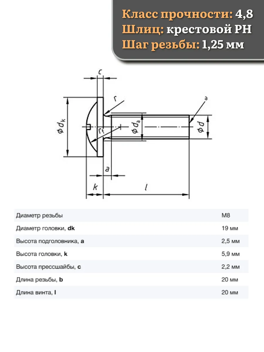 Винт мебельный с полукруглой головкой и прессшайбой, применяется при строительных работах, в машиностроении. Используется для монтажа из металла, пластика и древесины твердых пород. Монтаж производится в заранее подготовленное отверстие с применением гайки соответствующего диаметра, или применятся для вкручивания в различные резьбовые отверстия при монтаже.