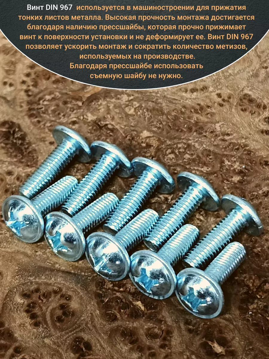 Винт с прессшайбой М8х20 мебельный DIN967, 50 шт.