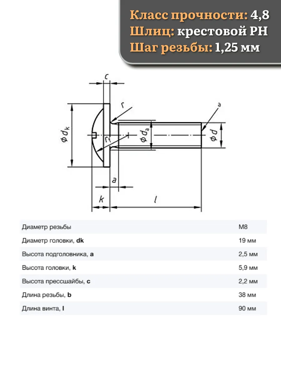 Винт с прессшайбой М8х90 DIN967 с гайкой фланец, 20 шт.