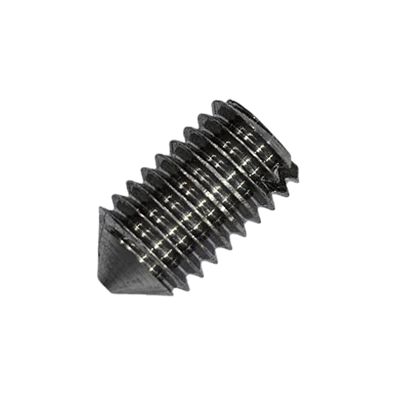 Стопорный винт с коническим концом и прямым шлицем предназначен для создания соединений, которые не работают на растяжение. Он широко используется в машиностроении и приборостроении для фиксации шестерёнок, подшипников, колец, втулок на валах.