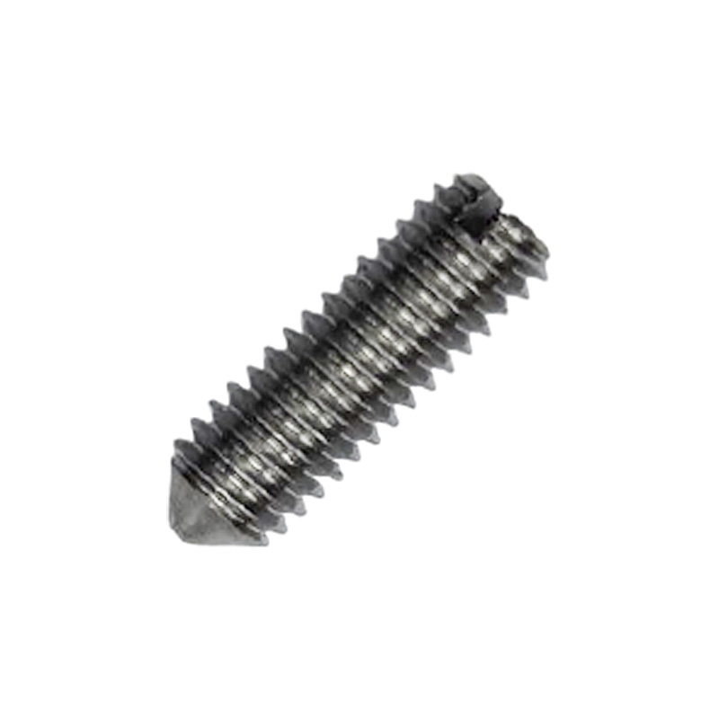 Стопорный винт с коническим концом и прямым шлицем предназначен для создания соединений, которые не работают на растяжение. Он широко используется в машиностроении и приборостроении для фиксации шестерёнок, подшипников, колец, втулок на валах.