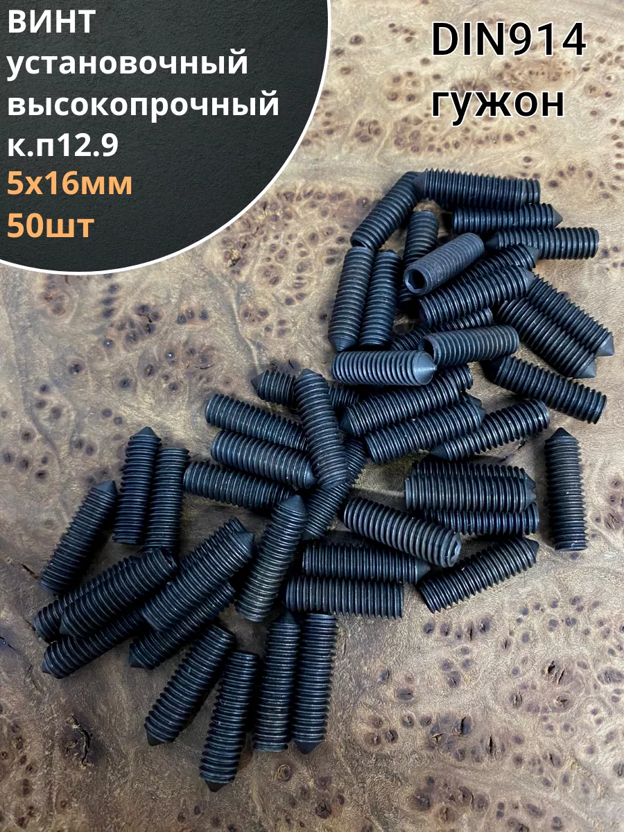 Винт установочный М5х16 мм к.п12.9 DIN914 ( гужон) 50шт
