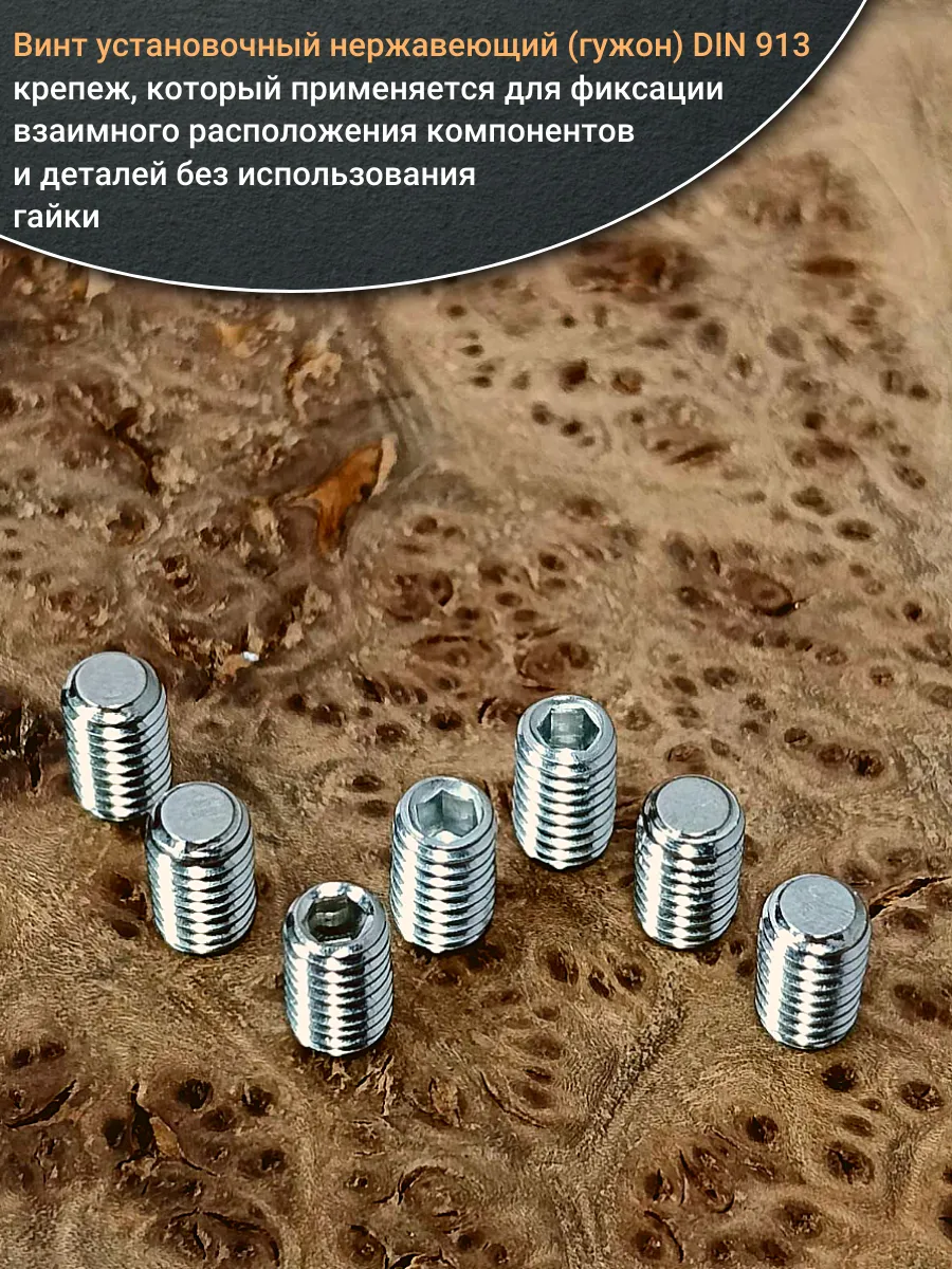 Винт установочный нержавеющий М3х10 DIN913 (гужон), 10 шт.