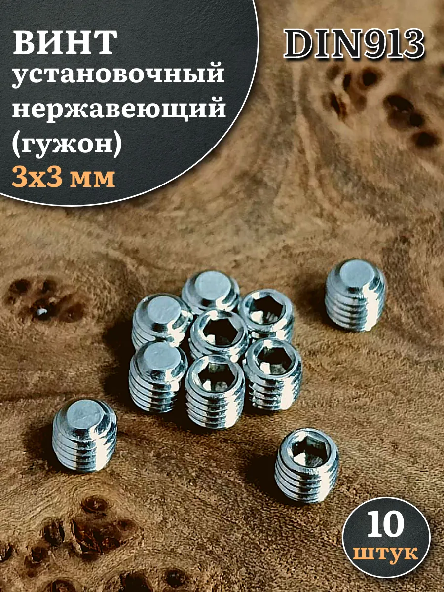 Винт установочный нержавеющий М3х3 DIN913 (гужон), 10 шт.