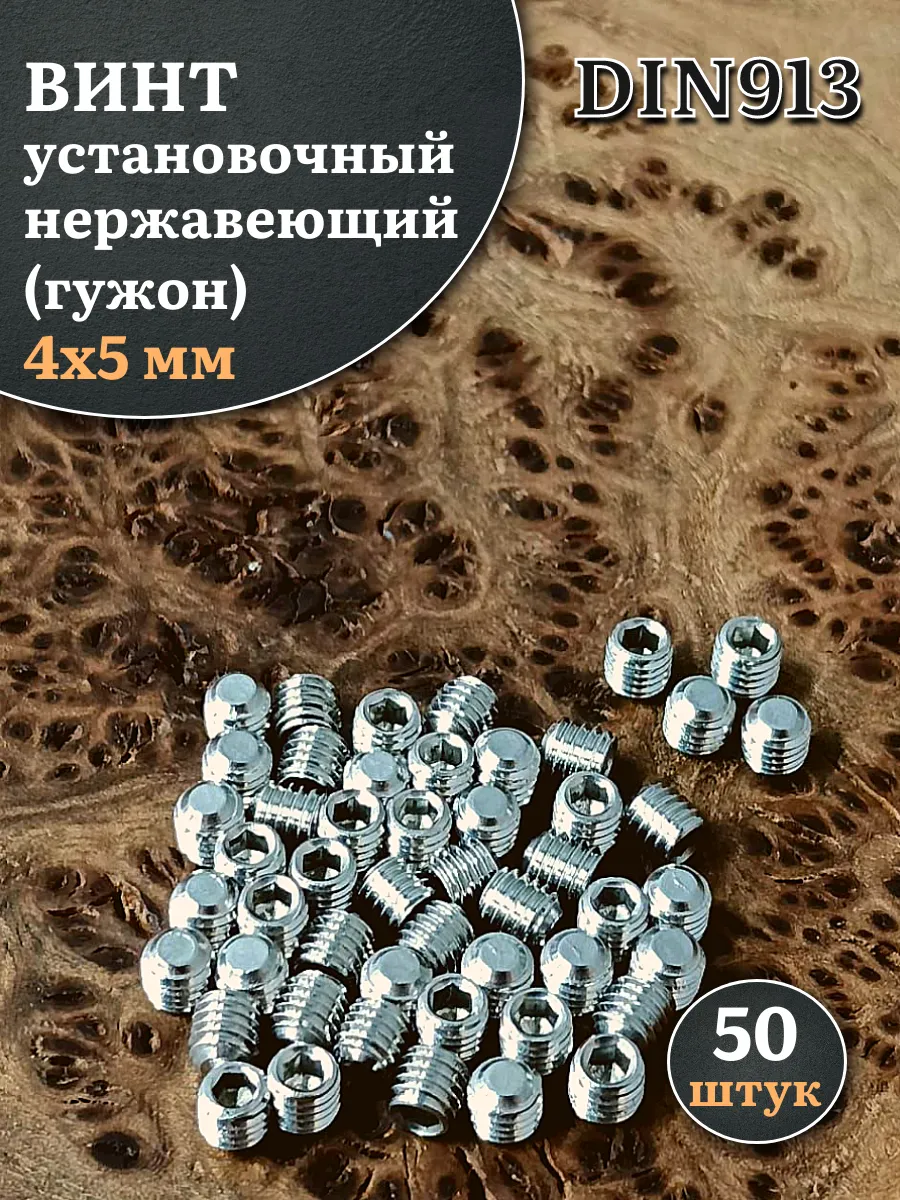 Винт установочный нержавеющий М4х5 DIN913 (гужон), 50 шт.