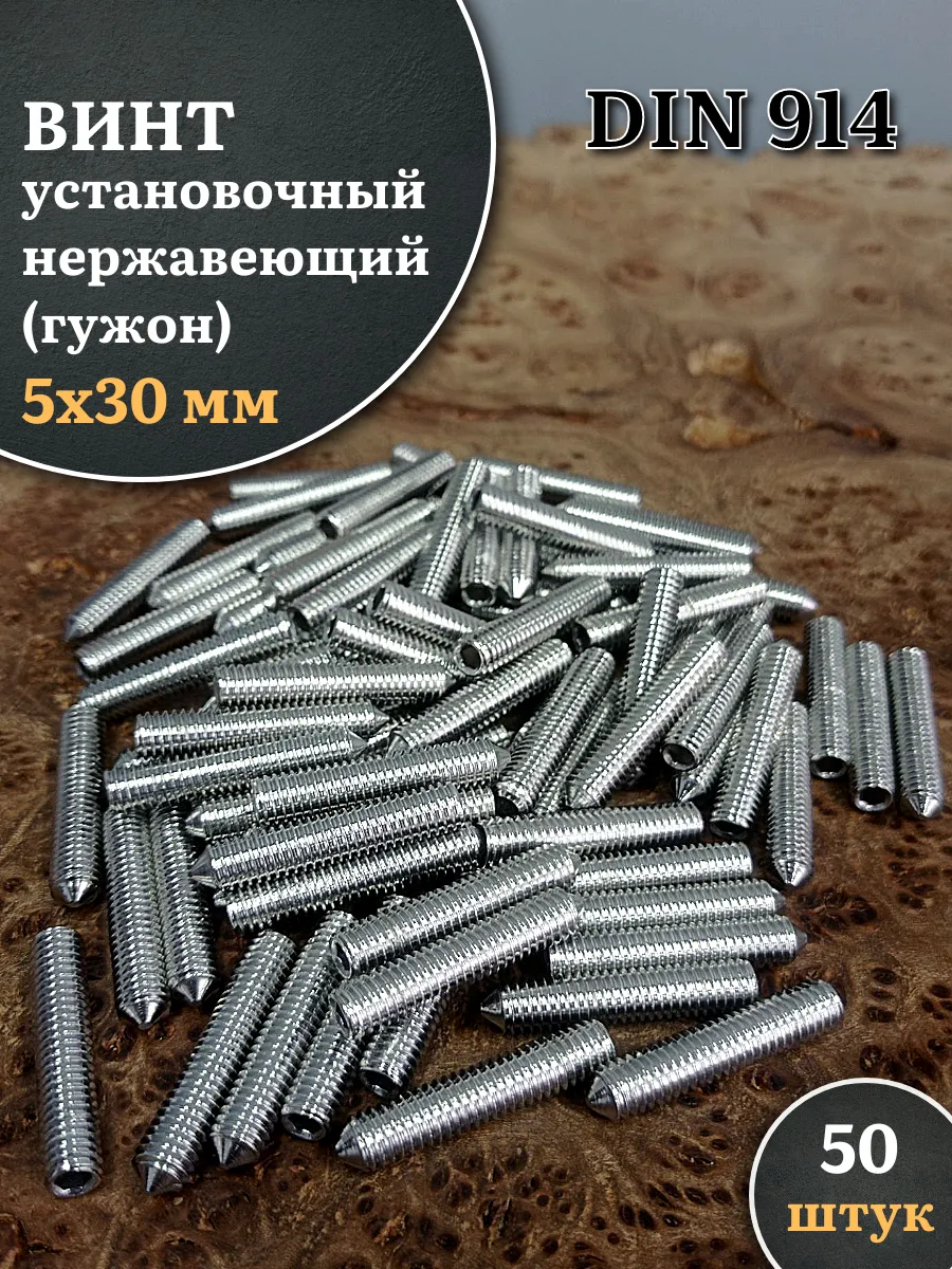 Винт установочный нержавеющий М5х30 DIN914 (гужон), 50 шт.