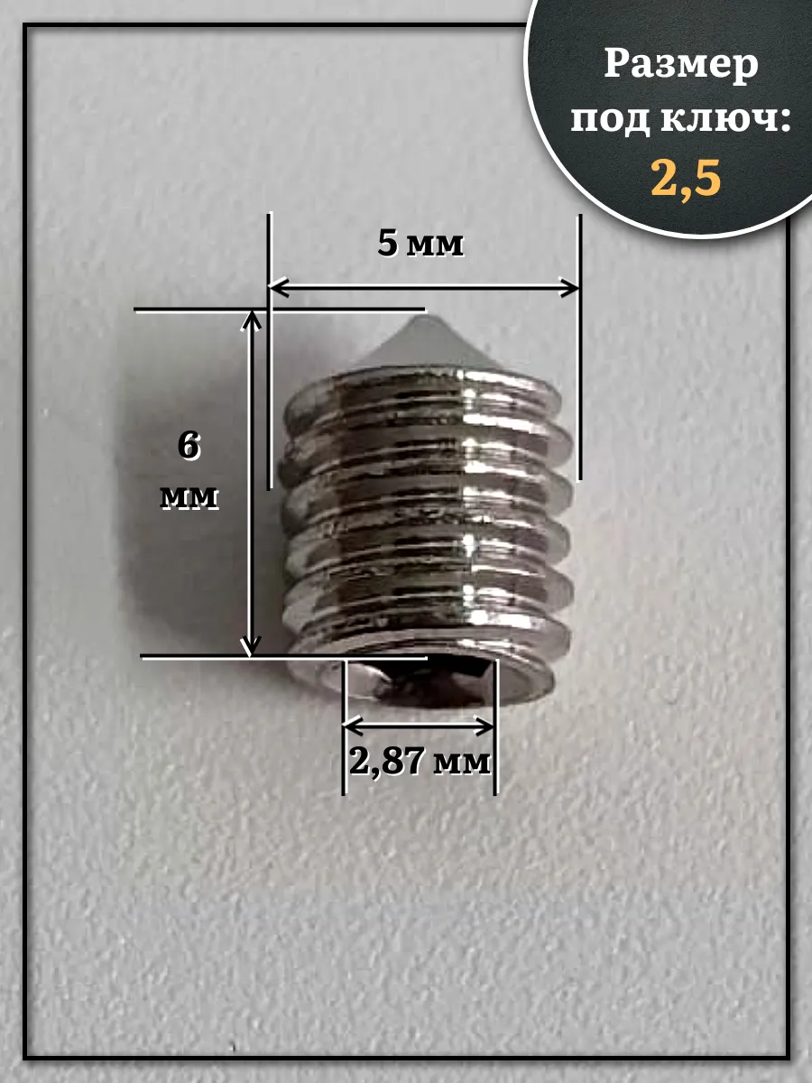 | Винт установочный нержавеющий М5х6 DIN914 (гужон), 50 шт. | МК18585ф50 | 1 шт. |