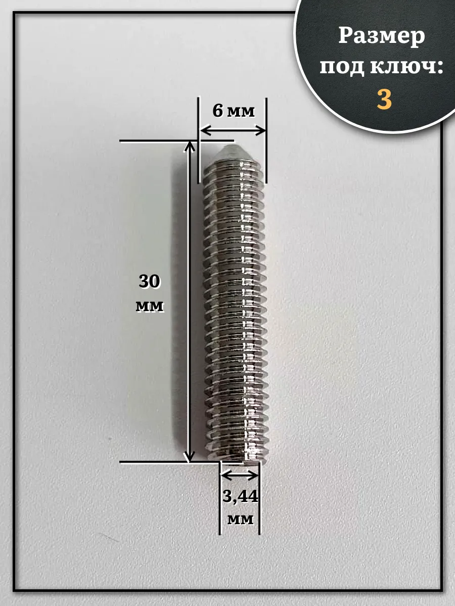 Винт установочный нержавеющий М6х30 DIN914 (гужон), 10 шт.