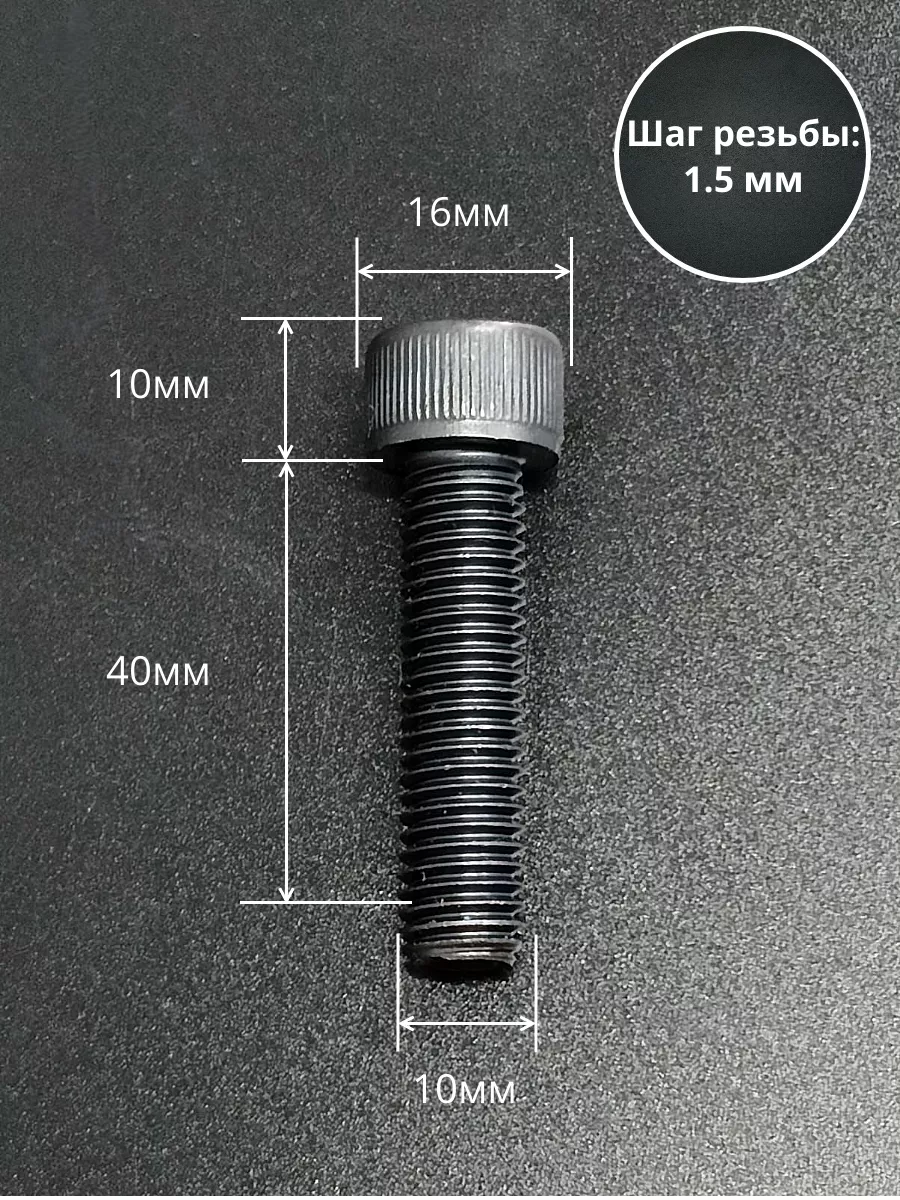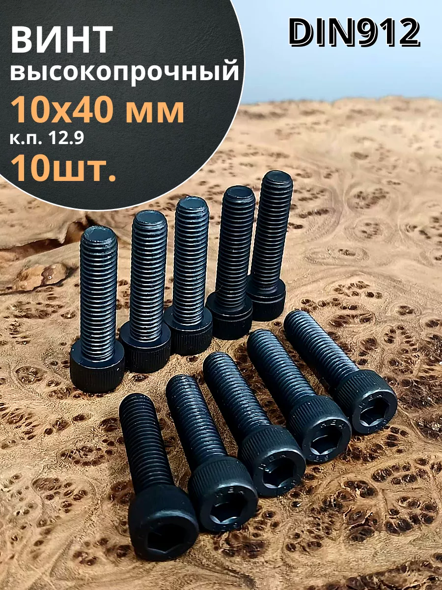 Винт высокопрочный ПР М10х40 мм к.п.12.9 черный DIN912, 10 шт.